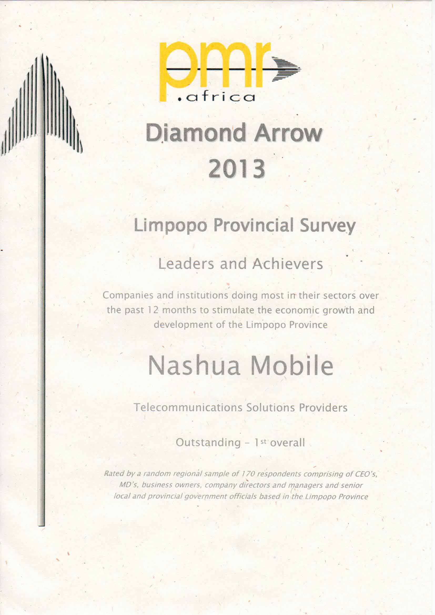 Mobile Technologies was awarded the Diamond Arrow Award for the "Highest rate Telecommunications Service Provider in the Limpopo Province for 2013
